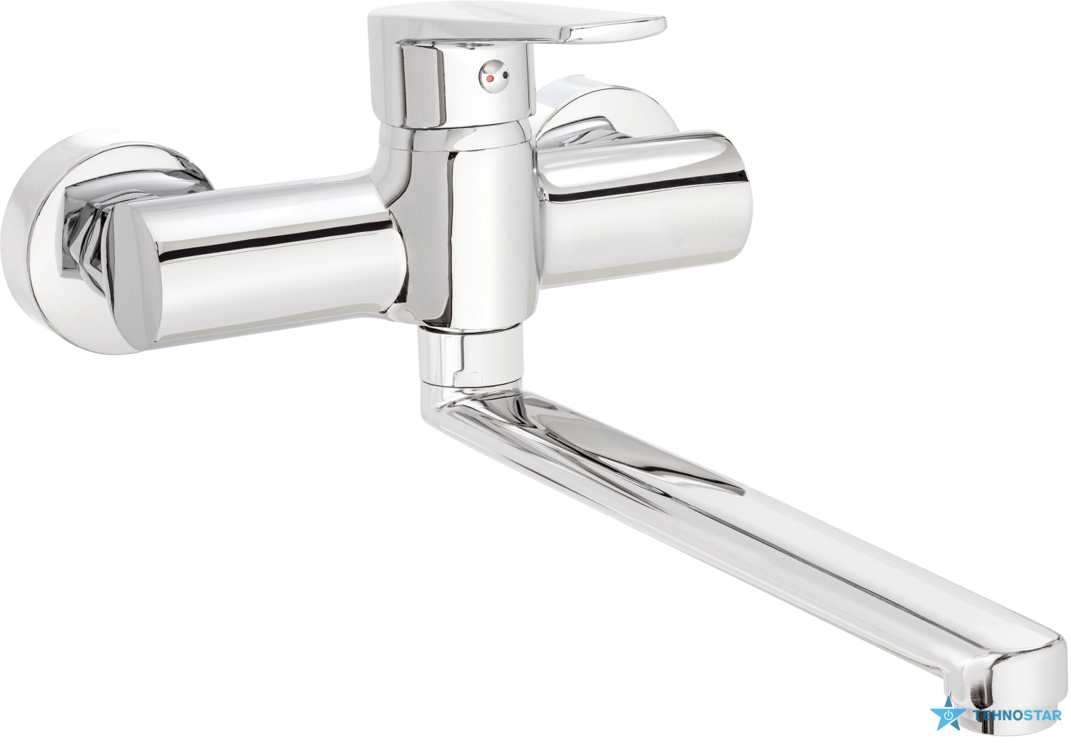 Це настінний одноважільний змішувач для кухні із серії Tubo від Deante — стильне та практичне рішення для мийки з довгим/поворотним виливом.