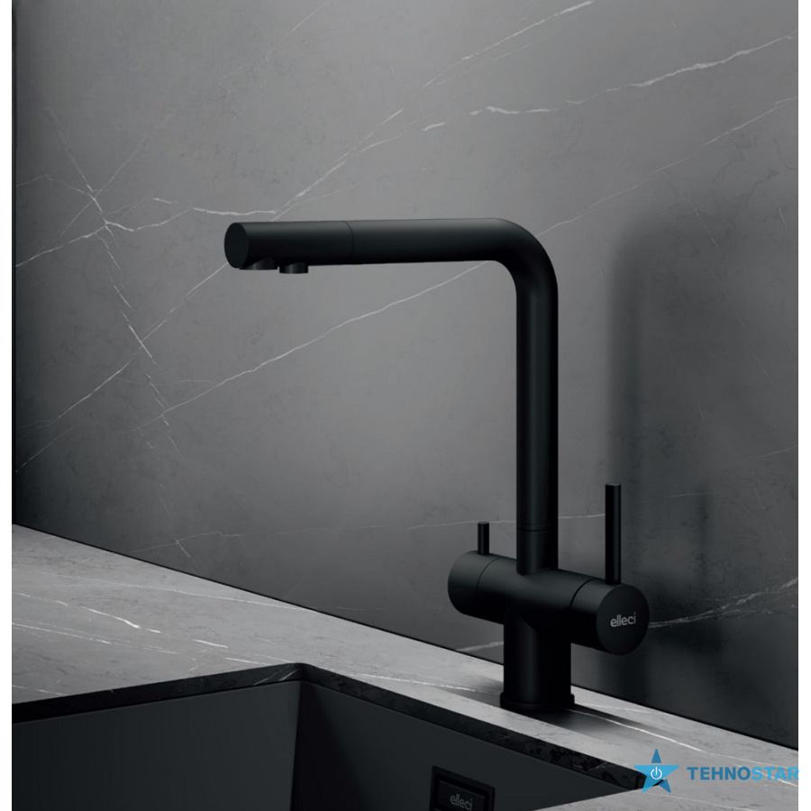Elleci Tourmaline Plus Pure nero 40 — це сучасний кухонний змішувач, який поєднує в собі елегантний дизайн та високу функціональність. Виконаний у глибокому чорному кольорі (nero) з композитного матеріалу Tourmaline Plus, він забезпечує виняткову стійкість до подряпин, високих температур і легкість у догляді.