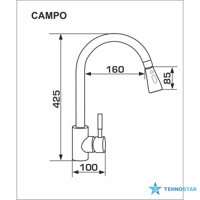 Висота 425 мм і ширина (виніс) 160 мм – параметри, які роблять змішувач доречним, якого б розміру не була ваша врізна мийка. А якщо мийка гранітна має велику чашу чи навіть дві – GRANADO CAMPO стане просто ідеальним рішенням.