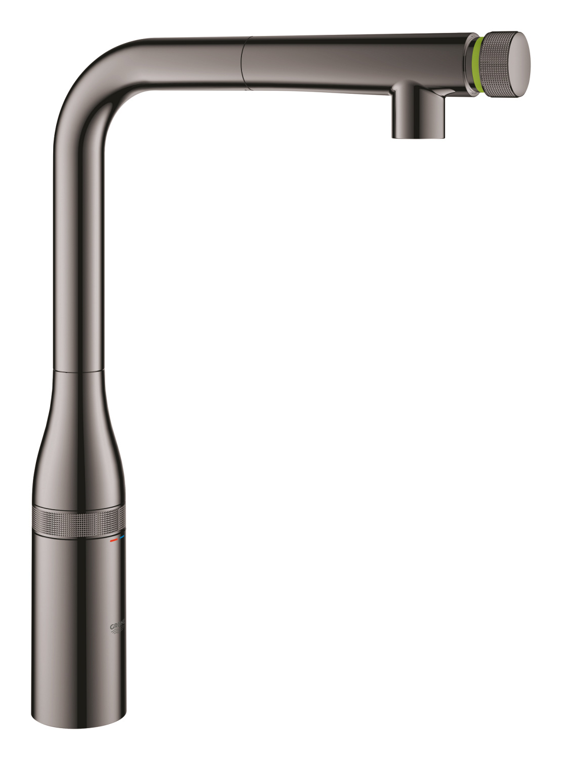 Функціональність розширюється завдяки висувній лійці, яка забезпечує абсолютну свободу рухів у радіусі мийної зони. Після завершення роботи система GROHE Magnetic Docking гарантує бездоганну фіксацію: потужний магніт м’яко підтягує лійку у вихідне положення, виключаючи будь-яке провисання з часом. Це рішення не лише підтримує візуальну цілісність L-подібного виливу, а й позбавляє користувача потреби щоразу вручну поправляти шланг, зберігаючи ідеальну геометрію пристрою.
