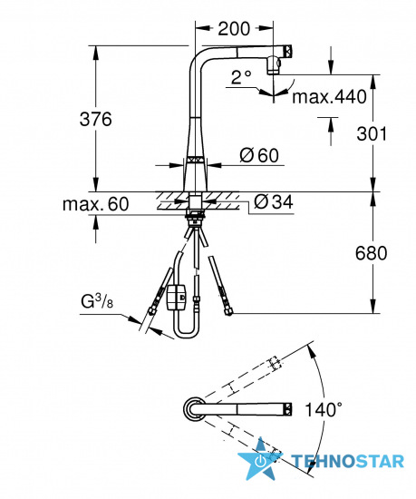 Високий Г-подібний вилив забезпечує простір для великих каструль і ваз, а можливість повороту на 140° робить змішувач практичним для подвійних мийок. Висувна лійка Dual Spray дозволяє легко перемикатися між режимами та зручно мити овочі чи очищати раковину. Завдяки технології Magnetic Docking лійка плавно повертається у вихідне положення після використання, що гарантує акуратність і довговічність.