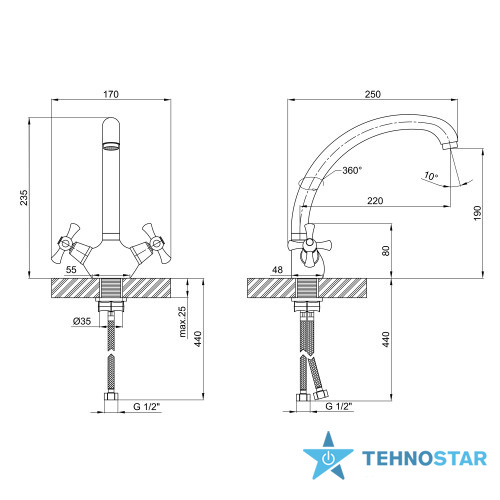 Змішувач для кухні Lidz (CRM) 75 21 271F-3 виготовлений з цинку. Завдяки глянсовому хромованому покриттю має оригінальний зовнішній вигляд. Виконаний в класичному стилі, з вентильними ручками для перемикання потоку холодної та гарячої води.