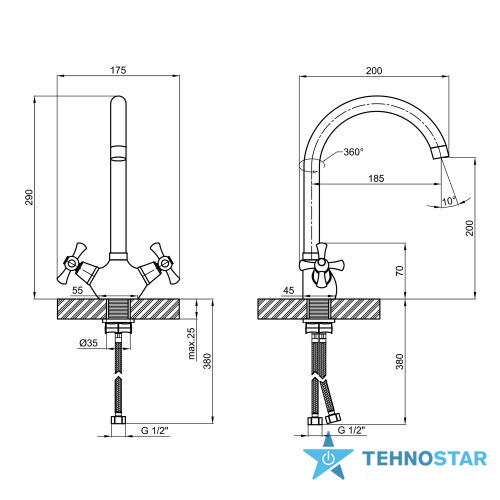 Змішувач для кухні Lidz (CRM) 75 21 271F-8 виготовлений з високоякісного цинку. Завдяки глянцевому хромованому покриттю виріб має оригінальний зовнішній вигляд і має більшу стійкість до зношування. Виконано в класичному стилі, з вентильними ручками для перемикання потоку холодної та гарячої води.