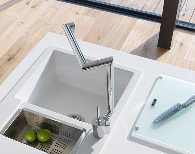 В коллекции смесителей Franke представлены всевозможные дизайнерские направления. Краны в стиле ретро в цвете медь или латунь подойдут к мебели с деревянными филенчатыми фасадами. Такая водоразборная фурнитура хорошо сочетается и с другими натуральными материалами: столешницами из мрамора или гранита, коваными аксессуарами. Не менее широк выбор моделей для современных интерьеров. Это смесители в матовом или блестящем хроме, а также краны с полимерным покрытием, имитирующим искусственный камень.