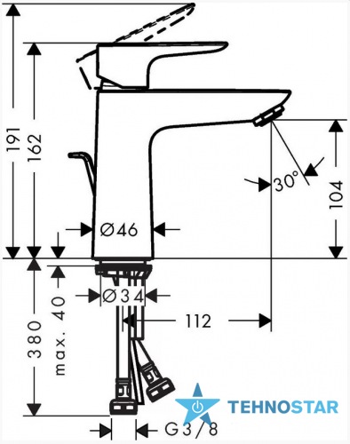 Змішувач для раковини Hansgrohe 71713000 Talis E Смеситель для раковины 110, однорычажный, CoolStart, со сливным гарнитуром, хром