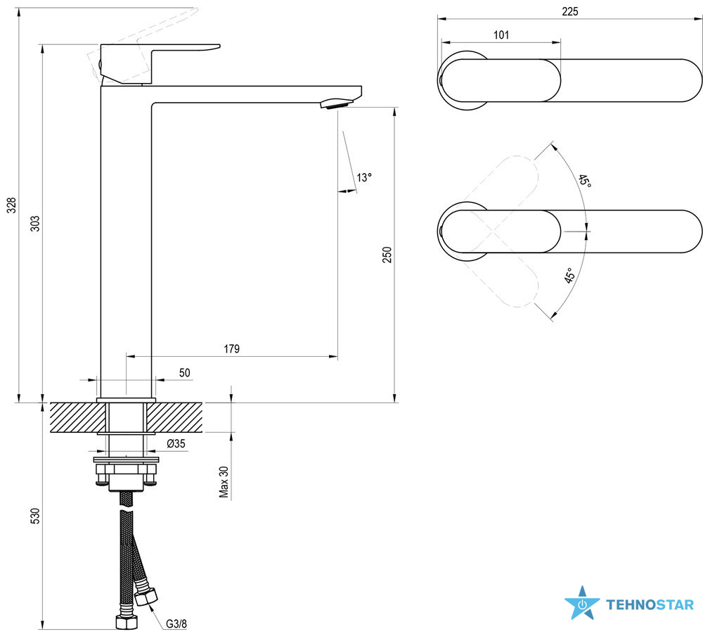 з'єднуючі шланги: гнучкий 450 мм, діаметр G3/8