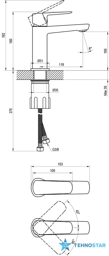 з'єднуючі шланги: гнучкий 450 мм, діаметр G3/8