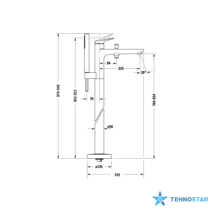 Duravit Wave WA5250000070 — це підлоговий (вільно стоячий) змішувач для ванни, призначений для монтажу поруч із ванною на підлогу. Його дизайн поєднує сучасну естетику з функціональністю, а матеріали та комплектні елементи забезпечують надійність і комфорт у використанні.