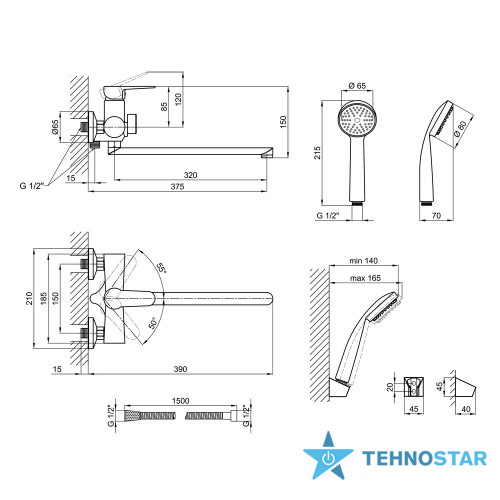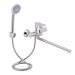 Змішувач для ванни Lidz (CRM) 14 34 005-1 з довгим поворотним виливом укомплектований тримачем ручного душу, душовим шлангом і лійкою хромованого кольору. Для вмикання потоку води передбачено важіль з нанесеним маркуванням Х+Г води. Для перемикання на душ - поворотний дивертор. Настінний монтаж здійснюється за допомогою кріпильних деталей, які комплектуються разом зі змішувачем. Круглі розетки приховають сліди установки на обробці.