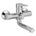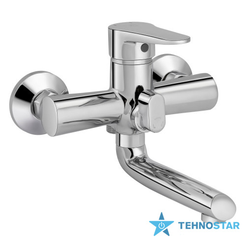 Змішувач для ванни Lidz (CRM) 14 34 006-1 з коротким поворотним виливом виготовлений з цинку, укомплектований кронштейном для ручного душу, душовим шлангом і лійкою. Для вмикання потоку води передбачено важіль з нанесеним маркуванням Х+Г води. Для перемикання на душ - поворотний дивертор. Настінний монтаж здійснюється за допомогою кріпильних деталей, які комплектуються разом зі змішувачем. Круглі розетки приховають сліди установки на обробці.