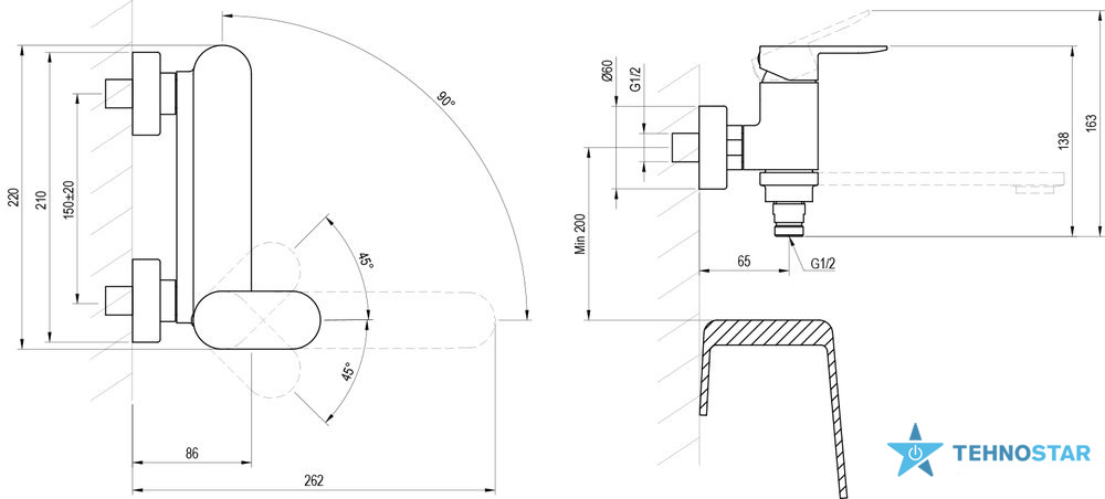 дизайн: термостатичний, контроль температури зліва - CoolFeel