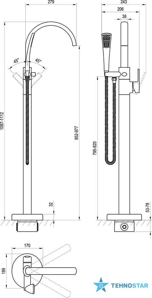 виконання: поставляється разом з R-box / без R-box - кріпильним модулем до трубопроводу в підлозі