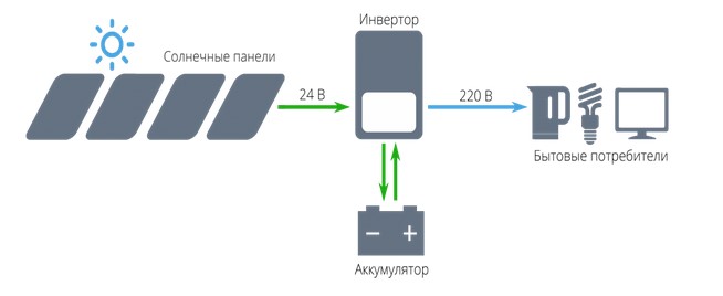 - Автономные электростанции. Автономная солнечная электростанция чаще всего используется в качестве резервного или дополнительного источника питания. В набор оборудования входят аккумуляторные батареи. Как правило, такие электростанции не подключаются к наружным электросетям, что позволяет сэкономить деньги и время, затраченные на получение разрешений в Облэнерго.
