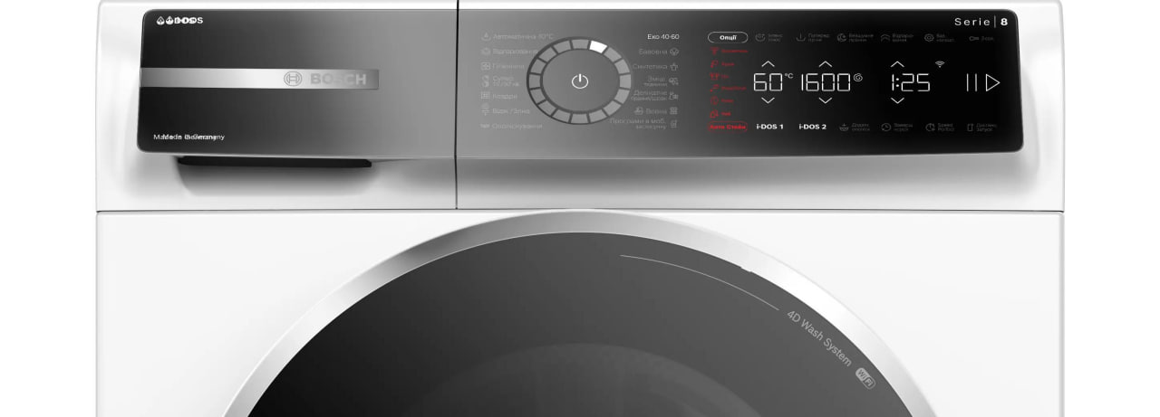 З Bosch бездоганне прання не потребує зусиль. Просто покладіть в барабан білизну та натисніть кнопку "Старт". Машина сама налаштує потрібні параметри залежно від виду тканини та ступеня забруднення. Хай кожне прання буде ідеальним.