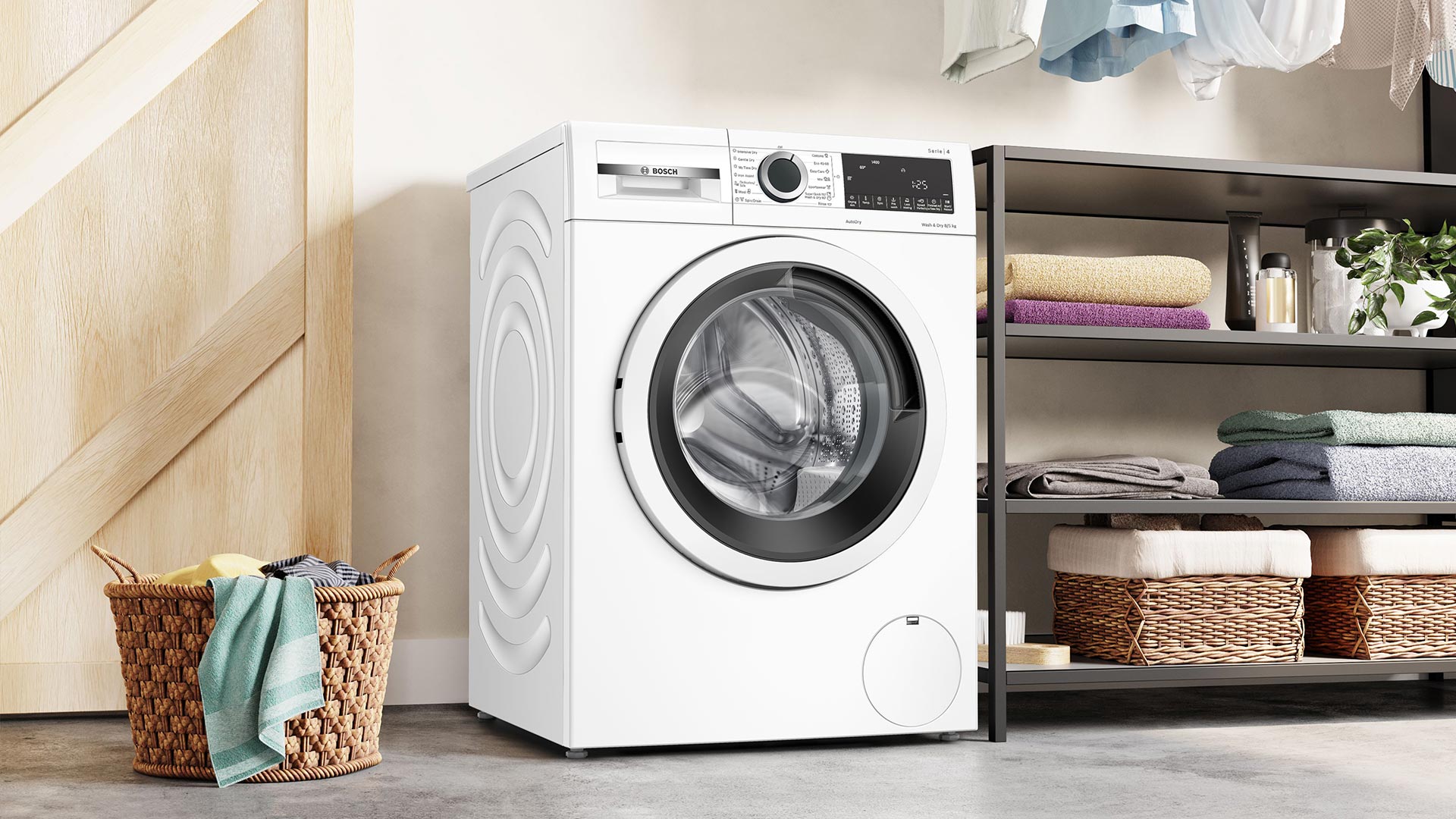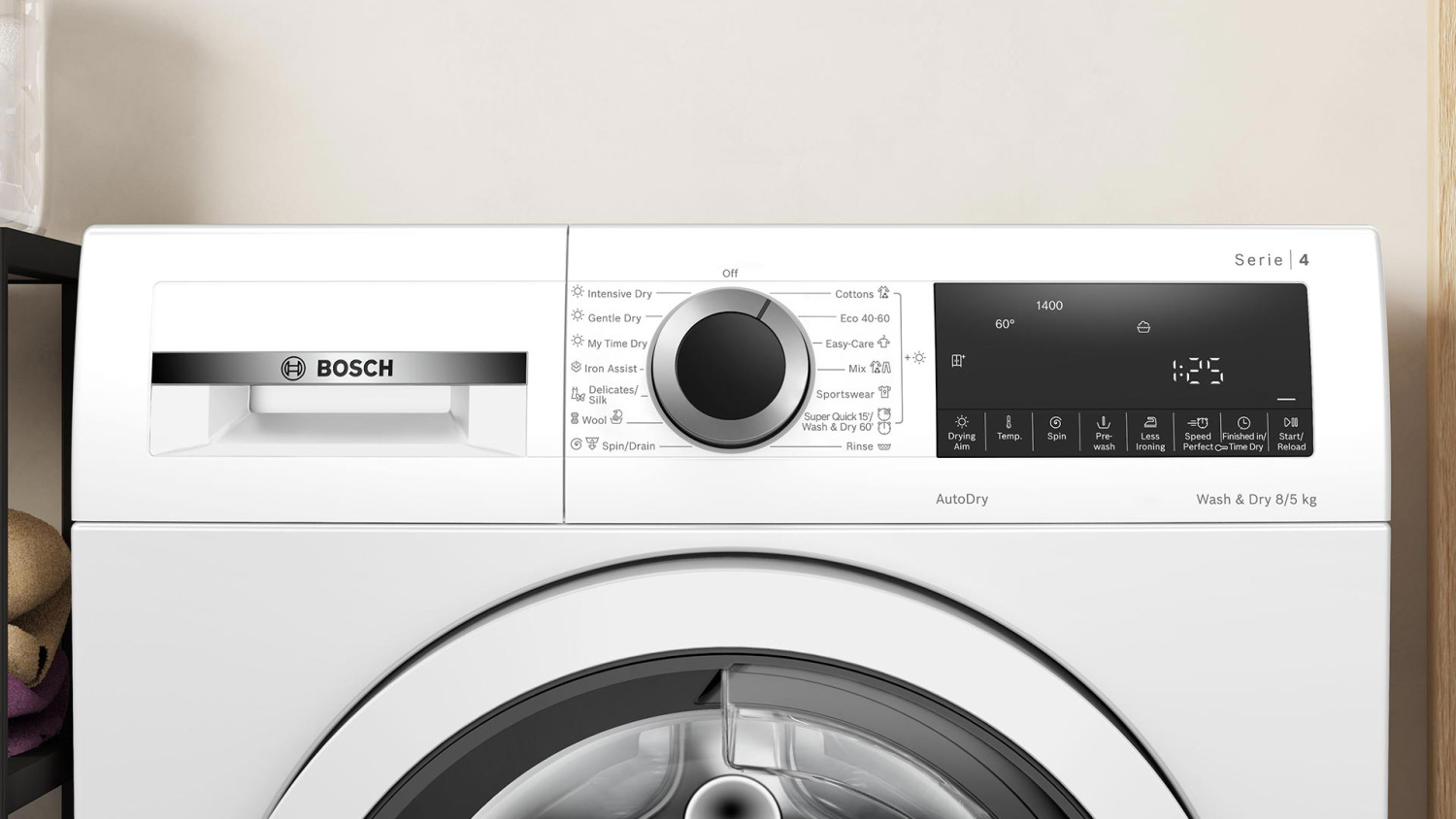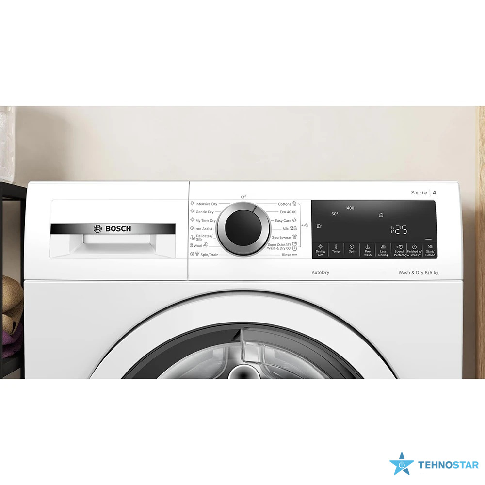 Максимальне завантаження машини складає 8 кг для прання та 5 кг для сушіння, що дозволяє прати та сушити великі обсяги білизни за один цикл – зручно для сімей з дітьми, активних людей або просто цінують свій час. Зокрема, передбачено швидку програму «прання+сушіння» за 60 хвилин, яка стане в нагоді, коли потрібно оперативно підготувати речі до використання. Крім неї, передбачені й інші спеціалізовані програми, включаючи режим спортивного одягу, відпарювання, делікатні тканини тощо.