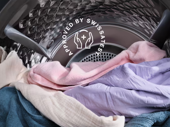 Програма «Гігієна», сертифікована Swissatest, поєднує прання та відпарювання для видалення понад 99,99% бактерій і вірусів* при температурі вище 60°C. Вона також сприяє зменшенню кількості пилку та алергенів, що забезпечує гігієнічну чистоту одягу після кожного прання.