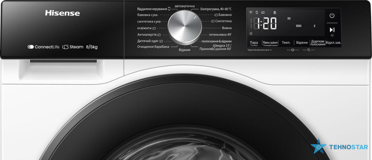 Технологія Steam Wash забезпечує додаткове очищення та дезінфекцію одягу, зменшуючи кількість бактерій та алергенів. Це особливо корисно для людей з чутливою шкірою або алергіями.
