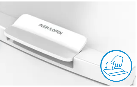 Новий ергономічний дизайн ще більше спрощує відкриття пральної машини з вертикальним завантаженням. Завдяки новій ручці з технологією Push & Open ви можете легко відкрити пральну машину, навіть коли ваші руки зайняті. Просто натисніть на неї одним пальцем або навіть ліктем, і пральна машина відкриється.