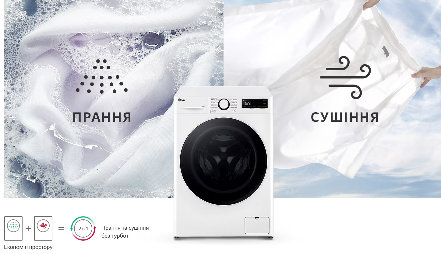 Прально-сушильні машини LG ідеально підходять для догляду за Вашим гардеробом. Економте простір у Вашому житлі та отримуйте чудові результати сушки без додаткових турбот.
