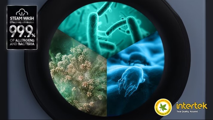 Будьте чистішими за допомогою сили пари. Гігієна Пар. Що стосується глибокого очищення, то не всі пральні машини підходять для цієї роботи. Тому корисно знати, що Hygiene Steam у вашій пральній машині Samsung усуває те, що ви бачите, і те, чого не бачите – бактерії, пилок, пилові кліщі тощо. Пара випускається вгору, щоб кожен предмет був глибоко та рівномірно чистий. Результати? 99,9% бактерій знищено, а алергени інактивовані*. Без попереднього замочування, без клопоту, без турбот.