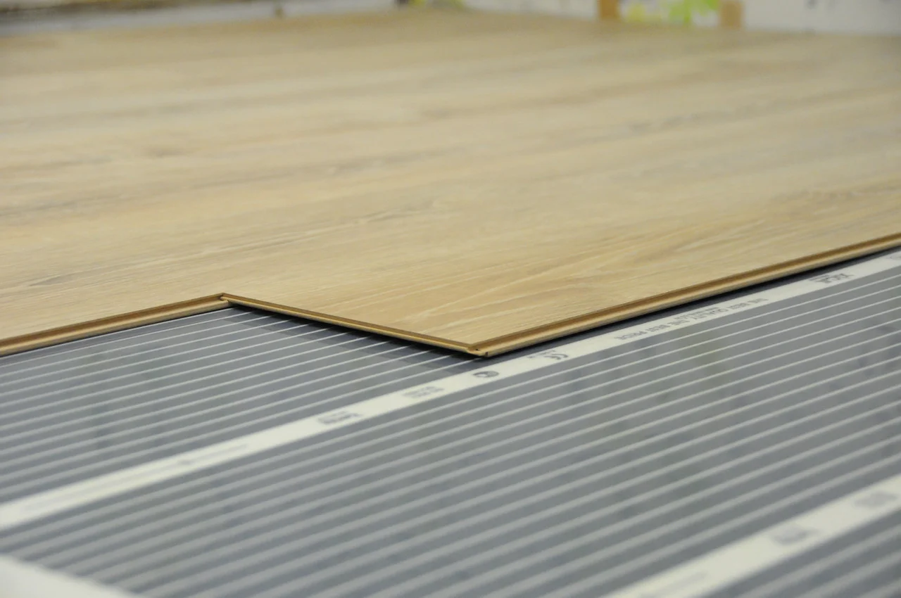 3. Под ламинат, кроме кабеля или мата, в качестве нагревательного элемента можно применить систему теплого пола в виде инфракрасной пленки.