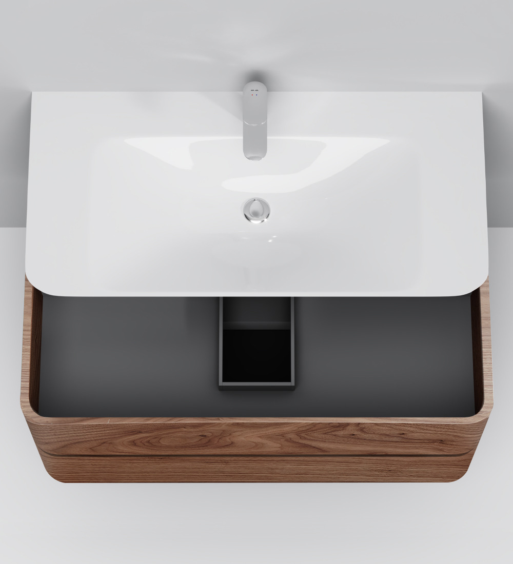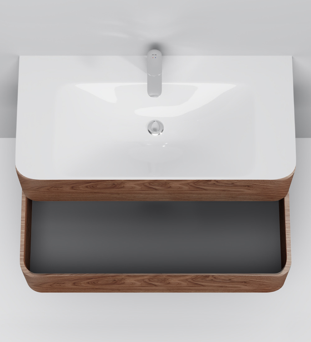 Эксклюзивное дизайнерское решение: боковые стенки и фасад представляют собой единое целое, предоставляя ящикам возможность полного выдвижения.