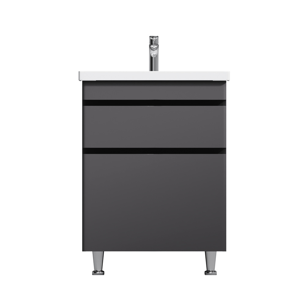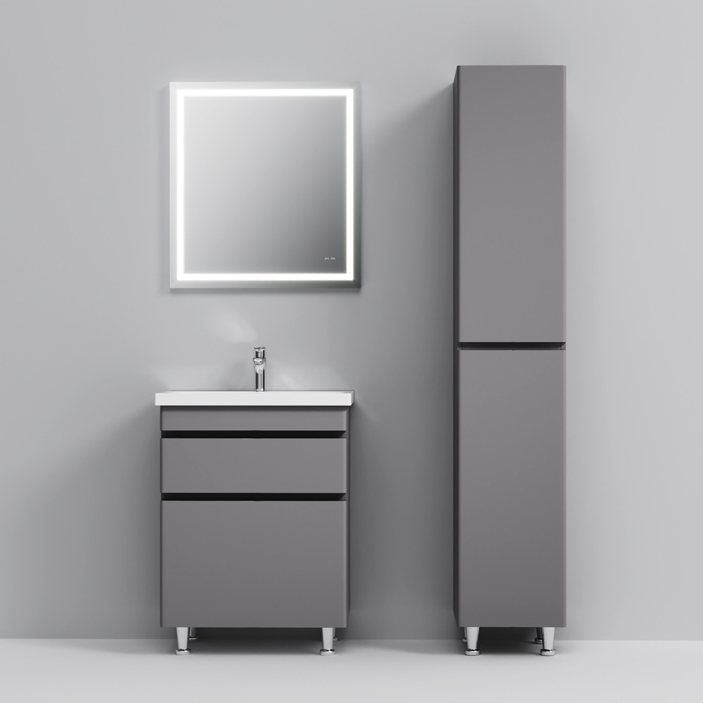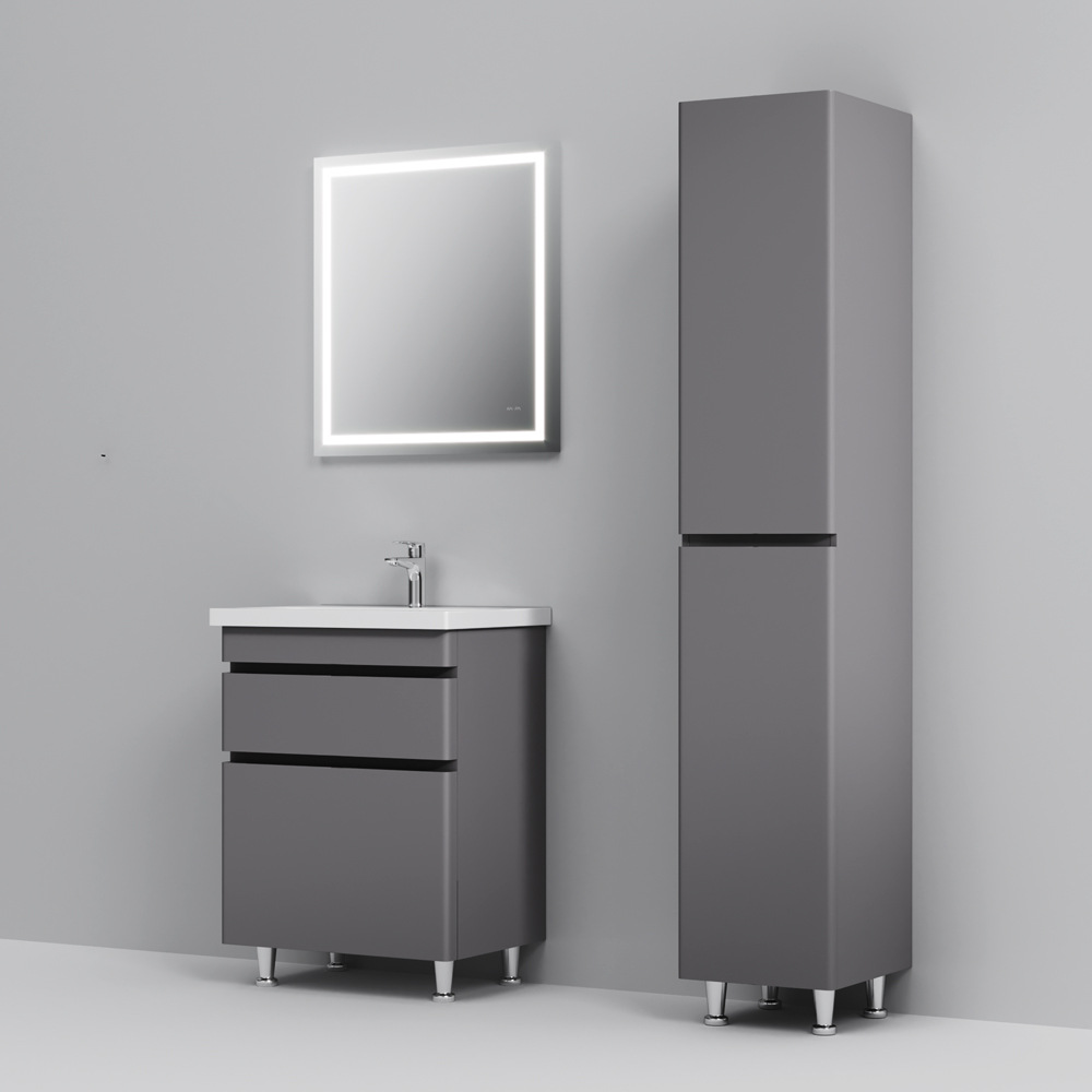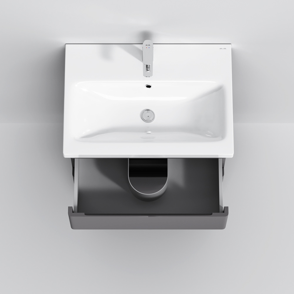 Новинка меблі для ванної Hit. Фасади в кольорі графіт покриті екологічно чистими і довговічними поліакриловими емалями, які наносяться за спеціальною технологією фарбування в 7 шарів. Це забезпечує насичений колір протягом усього терміну служби (від 10 років). М'яке відкриття і закриття ящиків забезпечують напрямні прихованого монтажу з системою м'якого закривання soft close. Тумба комплектується раковиною з склоподібного фарфору, самого гігієнічного і вологостійкого матеріалу. Це найкомпактніша і функціональна раковина на ринку: проекція всього 42 см при максимальній глибині чаші!