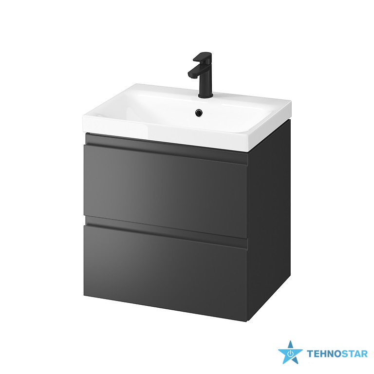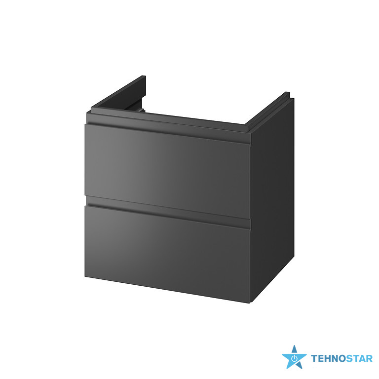 Тумба під умивальник MODUO з сучасним мінімалістичним дизайном виготовлена з антрацитової плити з матовим покриттям. Вона має зручні фрезеровані ручки та систему плавного закриття. Тумба сумісна з меблевим умивальником MODUO 60. Продається у зібраному вигляді. Тумба має дві повноцінні шухляди; ми рекомендуємо використовувати компактний сифон.