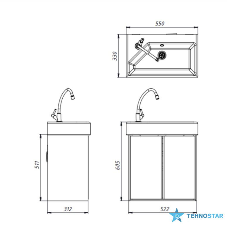Тумба підвісна Devit Quadra 55 см білий глянцевий 083055W з раковиною