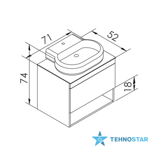 Комплектується керамічним накладним умивальником