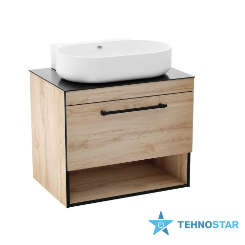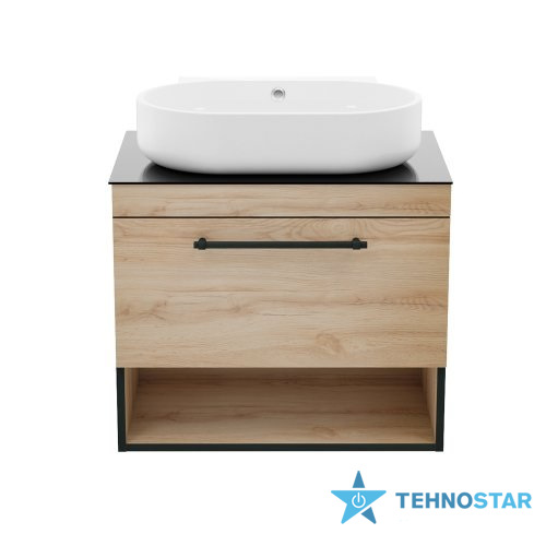 Тумба під раковину Imprese f32117OK(3) BLACK EDGE комплект меблів 70см, дуб: тумба підвісна + умивальник накладний + пенал підвісний