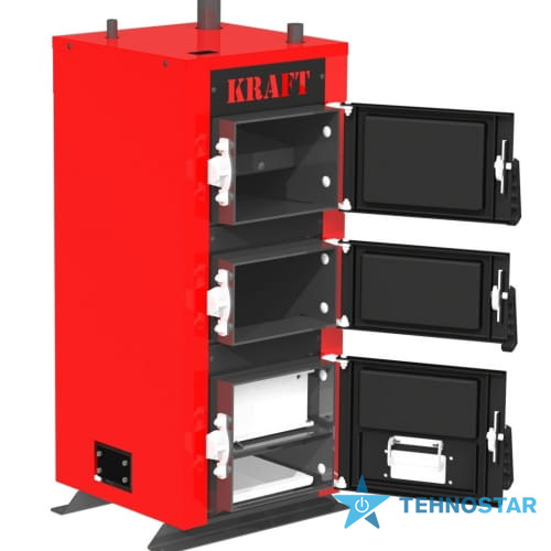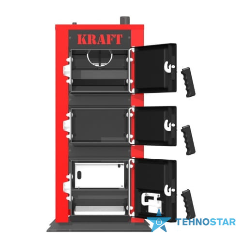 Твердопаливний котел Kraft K24 — це бюджетний котел, що виробляється з високоякісної (котлової) сталі, що працює на будь-якому твердому паливі. Однак основним паливом є вугілля різної якості та фракції. Котел має ефективність на рівні 85% завдяки великому теплообміннику, який знаходиться у верхній частині. Час роботи на одному завантаженні близько 10-15 годин (на вугіллі). На дровах цей показник сягатиме 5-6 годин.