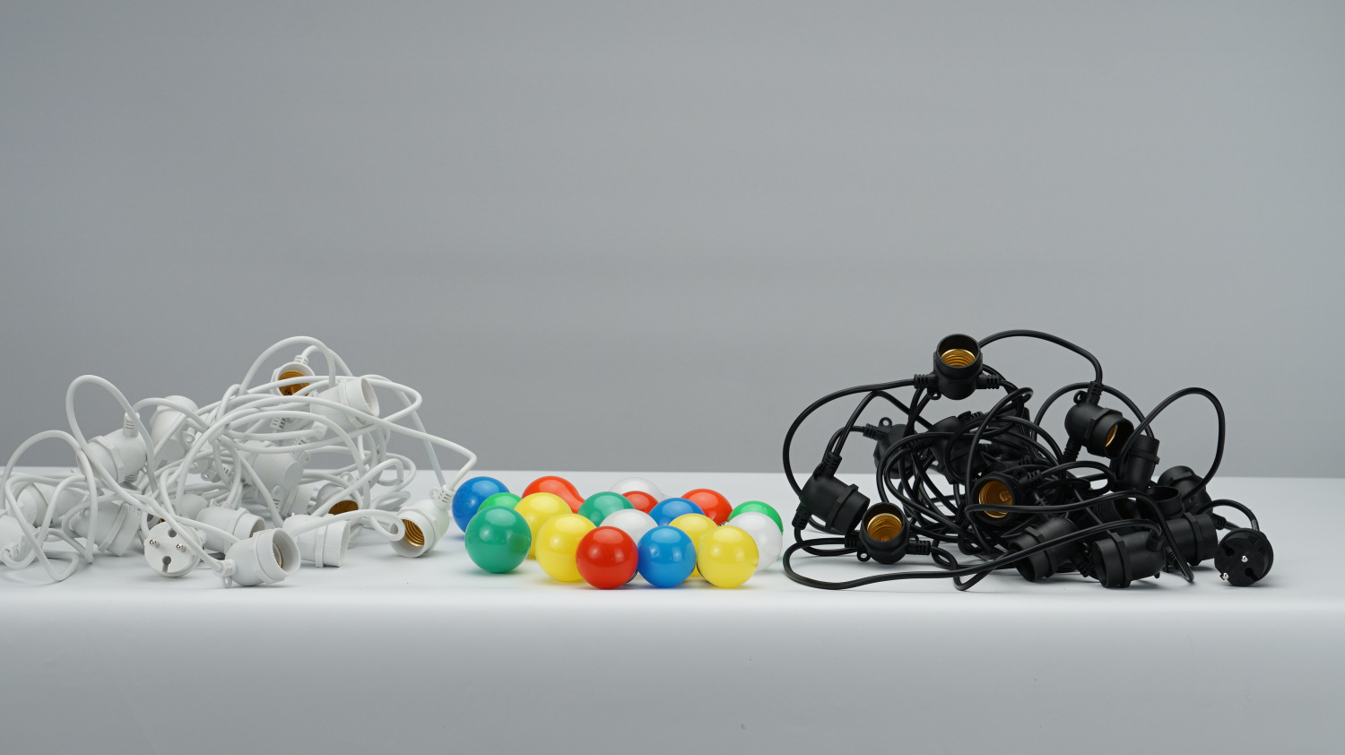 Гірлянди мають високу ступінь захисту ІР65 та ущільнююче кільце на кожному патроні гірлянди, що захищає відвпливу оточуючого середовища.