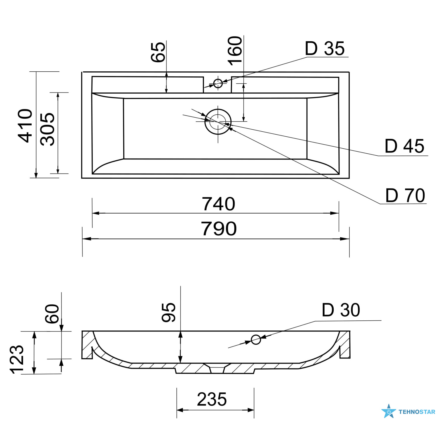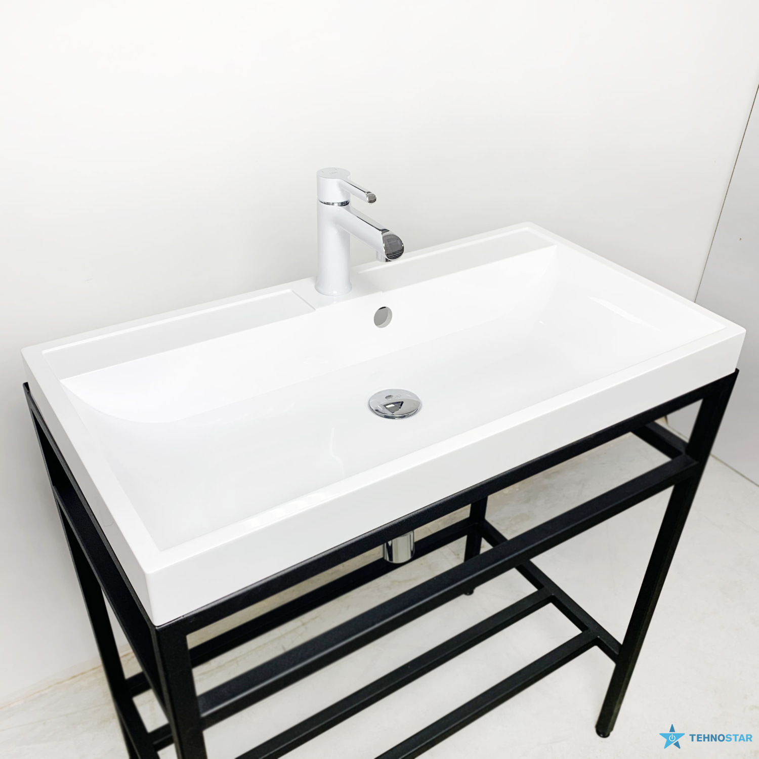 Раковина Adamant STRENG NEW пропонує накладний тип встановлення, прямокутну форму з отворами для змішувача та переливу.
