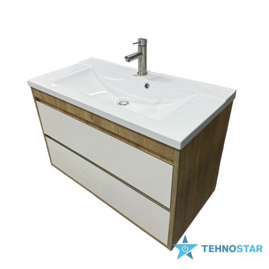 Раковина Adamant QUANTO 90 зі штучного каменю пропонує накладний тип встановлення, прямокутну форму та отвір для переливу. Змішувач Kroner KRP Edelstahl Klassisch ESG010 має хромове покриття, стаціонарний вилив довжиною 12 см та монтаж на один отвір. Сифон Soloplast Тюльпан 0515 включає мокрий гідрозатвор та автоматичний механізм Click-Clack.