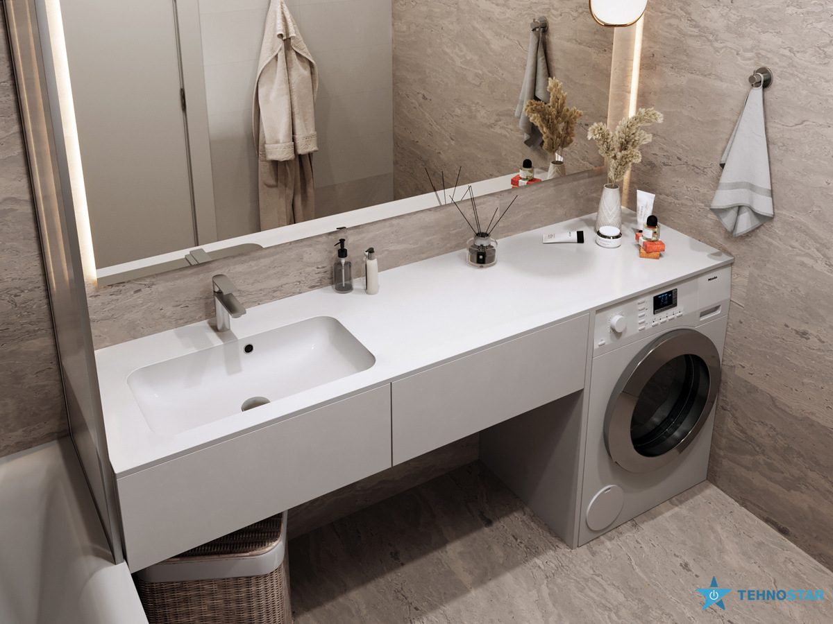 Прямокутна за формою чаші раковина має тип монтажу - накладний, врахуйте це перед замовленням меблів у ванну кімнату.