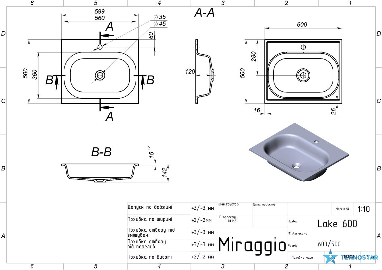 Умивальник LAKE 600 від бренду MIRAGGIO - це ідеальне рішення для санвузла дому, готелю чи дачі.