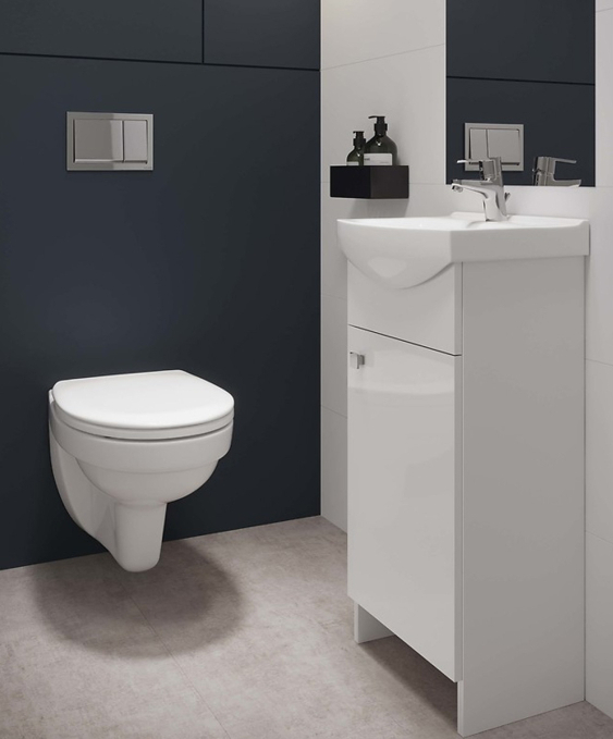 Умивальник Mito CERSANIA 55 ONE HOLE у білому глянці створений для сучасних ванних кімнат, де важливі стиль та практичність. Виконаний із високоякісної сантехнічної кераміки у відтінку EURO WHITE, він має елегантну глянцеву поверхню, яка легко очищується та зберігає свій блиск протягом тривалого часу. Завдяки універсальному кольору модель гармонійно поєднується з іншою сантехнікою та меблями.