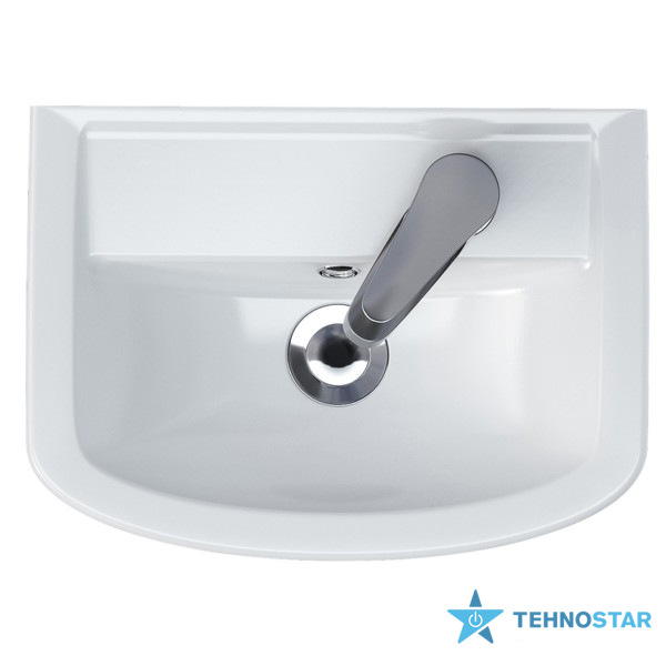 Практичність моделі проявляється у продуманих деталях: правосторонній отвір для змішувача дозволяє оптимально розташувати арматуру, а інтегрований перелив гарантує безпечність у використанні. Компактні розміри роблять умивальник зручним для невеликих просторів, де важливо зберегти функціональність без втрати комфорту.
