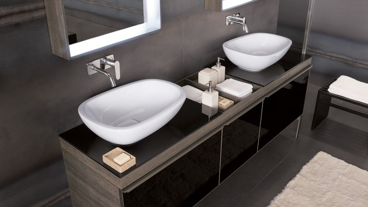 В продаже доступна фирменная сантехника нескольких вариантов монтажа. В зависимости от модели раковины устанавливаются на тумбу, врезаются в столешницу или навешиваются на стену в виде инсталляции. Смеситель монтируется на раковине, на столешнице или на стене. Выбор конкретной модели умывальника geberit зависит от площади и планировки вашего санузла.