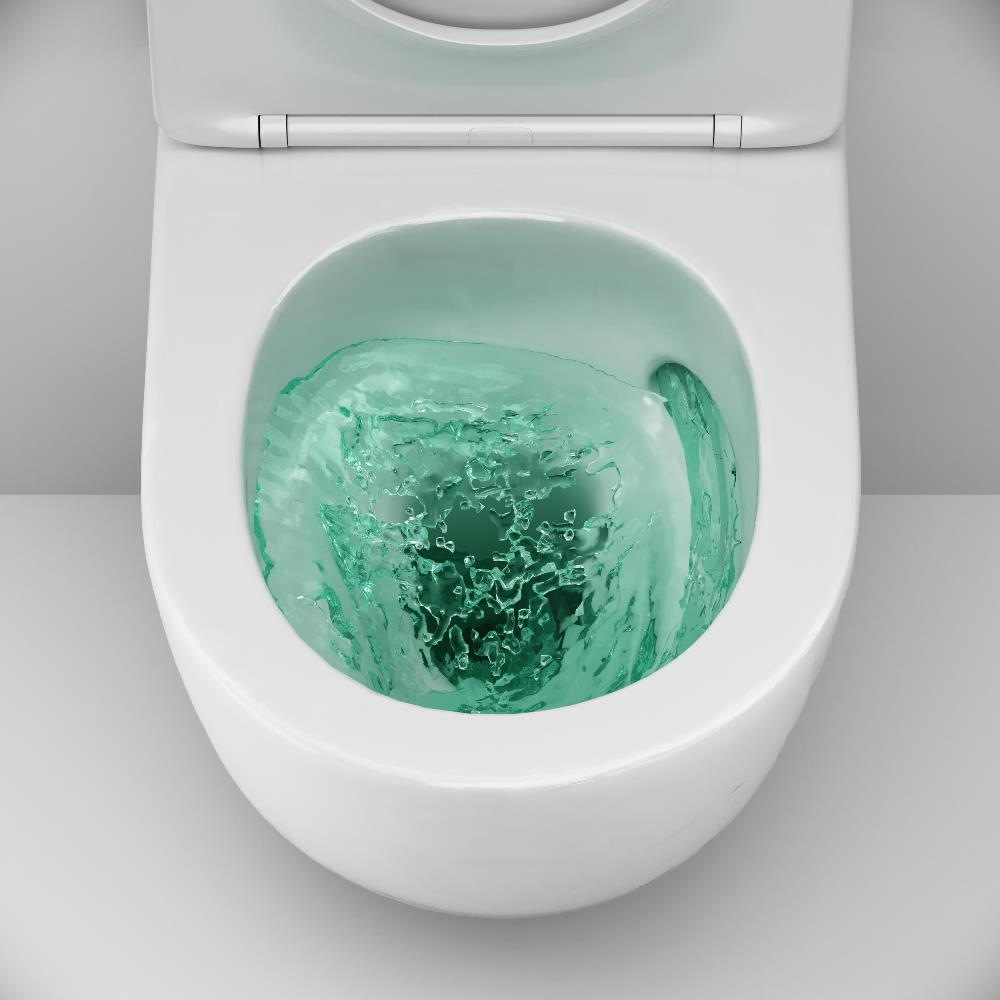 Ця технологія забезпечує більш якісне омивання чаші, ніж традиційні системи змиву, і при цьому економить воду до 50 %.крім того, вона знижує рівень шуму при змиві і виключає бризки води, що робить використання унітазу більш комфортним і гігієнічним.