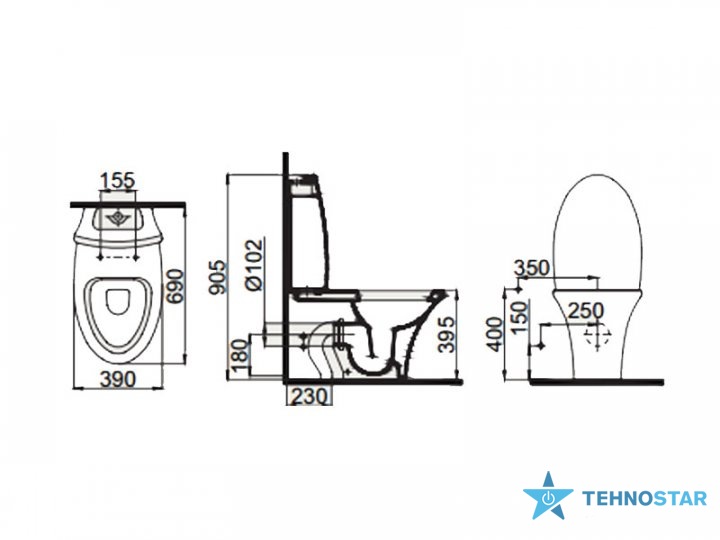 Комплект поставки Унитаз-компакт, Сиденье, Бачок, Сливной механизм, Крепления для сиденья