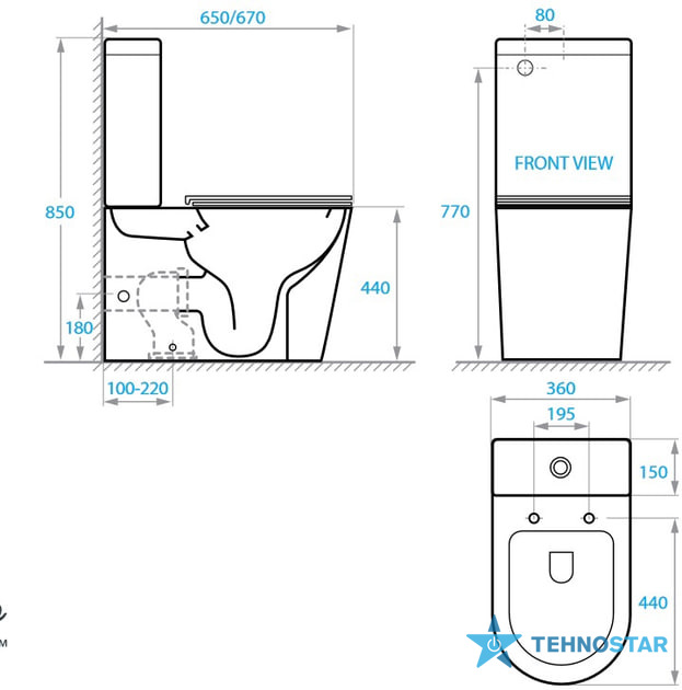 Підлоговий унітаз-компакт Grace від Koller Pool є чашею з універсальним зливом і поставляється з бачком 3/6 л, і з дюропластовим сидінням з функцією плавного закриття кришки Soft Close.
