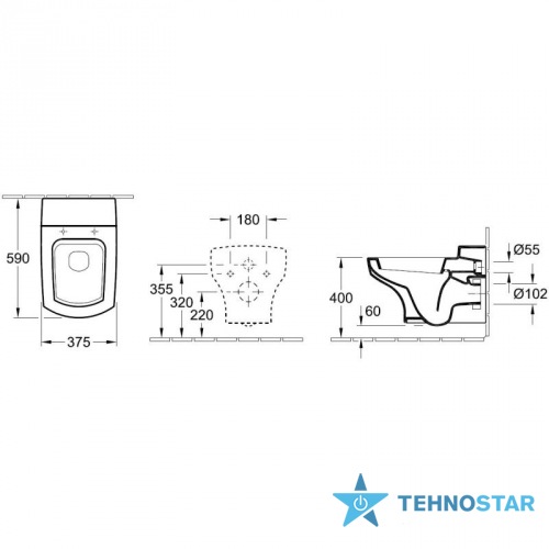 УНИТАЗ ПОДВЕСНОЙ ЯРКО-БЕЛЫЙ CERAMICPLUS VILLEROY & BOCH BELLEVUE 566410R2