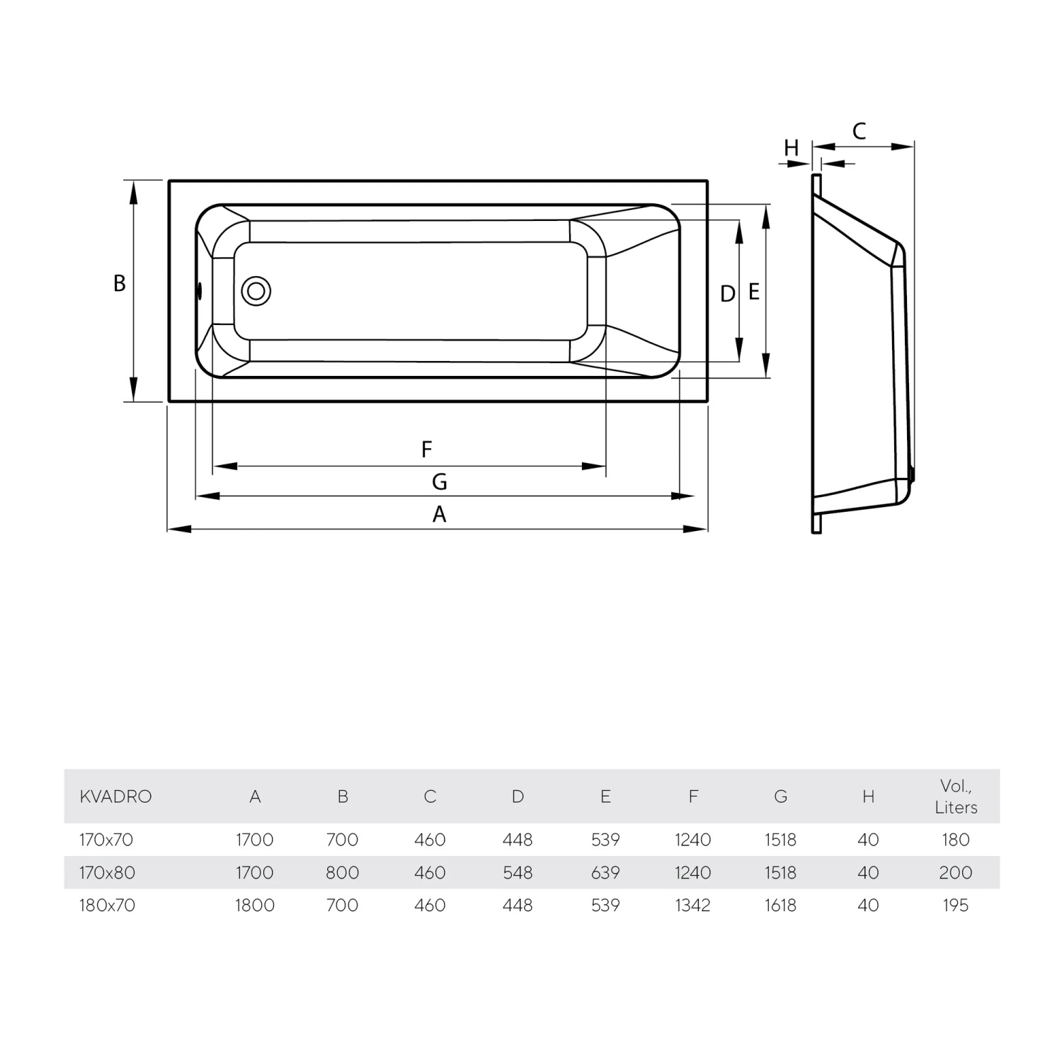 Внутрішній простір Koller Pool Kvadro 180х70 спроєктований із врахуванням анатомічних особливостей людини: оптимальний кут нахилу спинної частини забезпечує м'яку підтримку хребта, допомагаючи зняти м'язову напругу після насиченого дня. Широкі пласкі борти не лише підкреслюють архітектурну витонченість моделі, а й слугують функціональною зоною для аксесуарів або можливого встановлення врізного змішувача. Це поєднання австрійських стандартів якості та продуманого дизайну, яке перетворює звичайну ванну кімнату на персональну зону відновлення сил.
