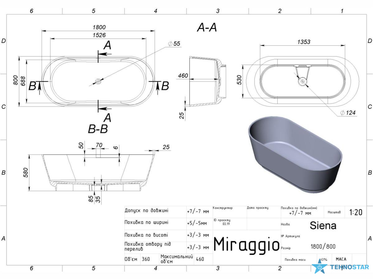Модель SIENA також може бути виготовлена у технологіях MIRAMARBLE та MIRAMARBLE MATT.
