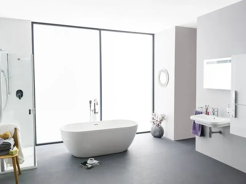 Ravak Freedom O — окремо стояча ванна з м’якою овальною формою, створена для сучасних та дизайнерських ванних кімнат. Модель найкраще підходить для інтер’єрів у стилях modern, minimal, contemporary, spa та premium-loft, де ванна виступає центральним елементом простору. Завдяки симетричному дизайну її зручно розміщувати як у центрі приміщення, так і біля візуальної осі кімнати, поєднуючи з підлоговим окремо стоячим змішувачем. Конструкція передбачає приховане підведення комунікацій, що дозволяє зберегти чистоту інтер’єру без видимих технічних елементів.