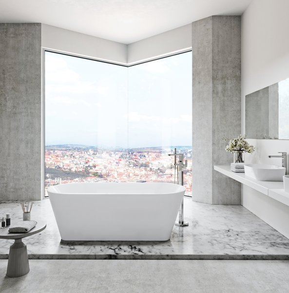 Ванна SOLO вирізняється гармонійним поєднанням двох базових геометричних форм. Прямокутна основа створює відчуття стабільності, тоді як плавний овальний верх підсилює атмосферу спокою та розслаблення. Мінімалістичний силует робить модель акцентним елементом простору й підкреслює її незалежний характер.
