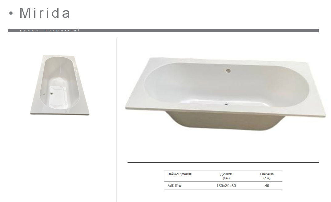 !!! Увага, у комплектацію ванни не ходить каркас та ніжки. Для замовлення звертайтесь до менеджера.