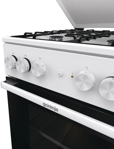 Модель: GK5A22WH від бренду Gorenje, серія G400 — це комбінована плита з газовими та електричними функціями для зручного приготування їжі. Вона включає газову варильну поверхню і електричну духовку для оптимального вибору приготування.